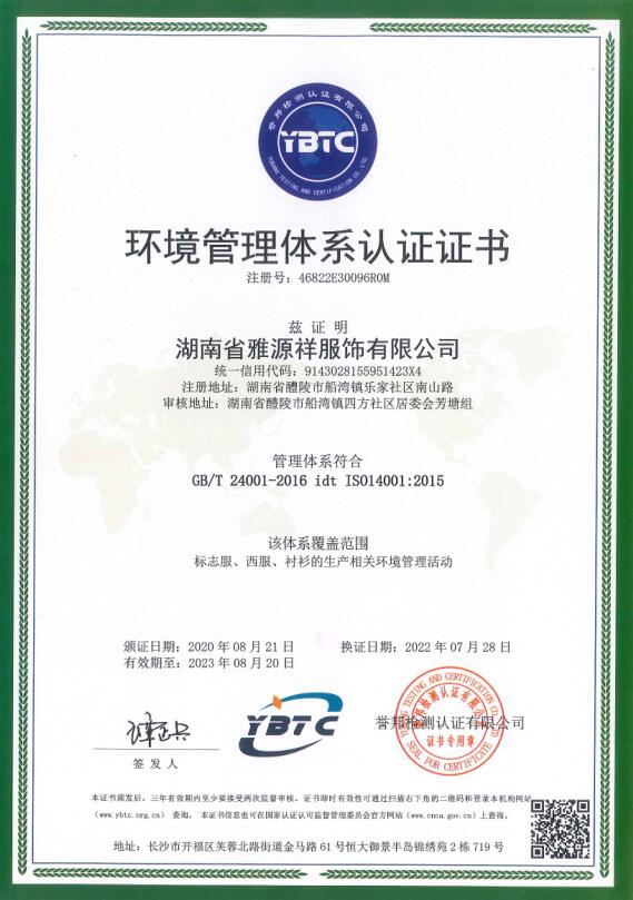 1、企業(yè)概況 湖南省雅源祥服飾有限公司地處湘贛邊境素有瓷城之稱的醴陵郊區(qū),企業(yè)創(chuàng)建于1995年,是行政執(zhí)法制服、被裝的生產(chǎn)企業(yè)。2、組織機(jī)構(gòu) 跟隨改革開(kāi)放的步伐,我公司不斷發(fā)展壯大,公司董事會(huì)下設(shè)總經(jīng)理辦公室、生產(chǎn)部、技術(shù)部、質(zhì)檢部、財(cái)務(wù)部、采購(gòu)部、業(yè)務(wù)部等部門,下設(shè)有流水線西服生產(chǎn)車間、標(biāo)志服生產(chǎn)車間、襯衣生產(chǎn)車間、... [更多]